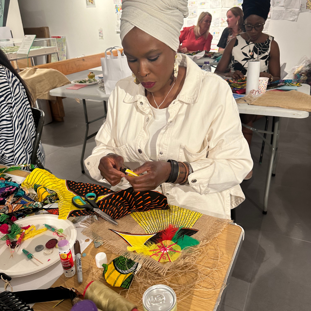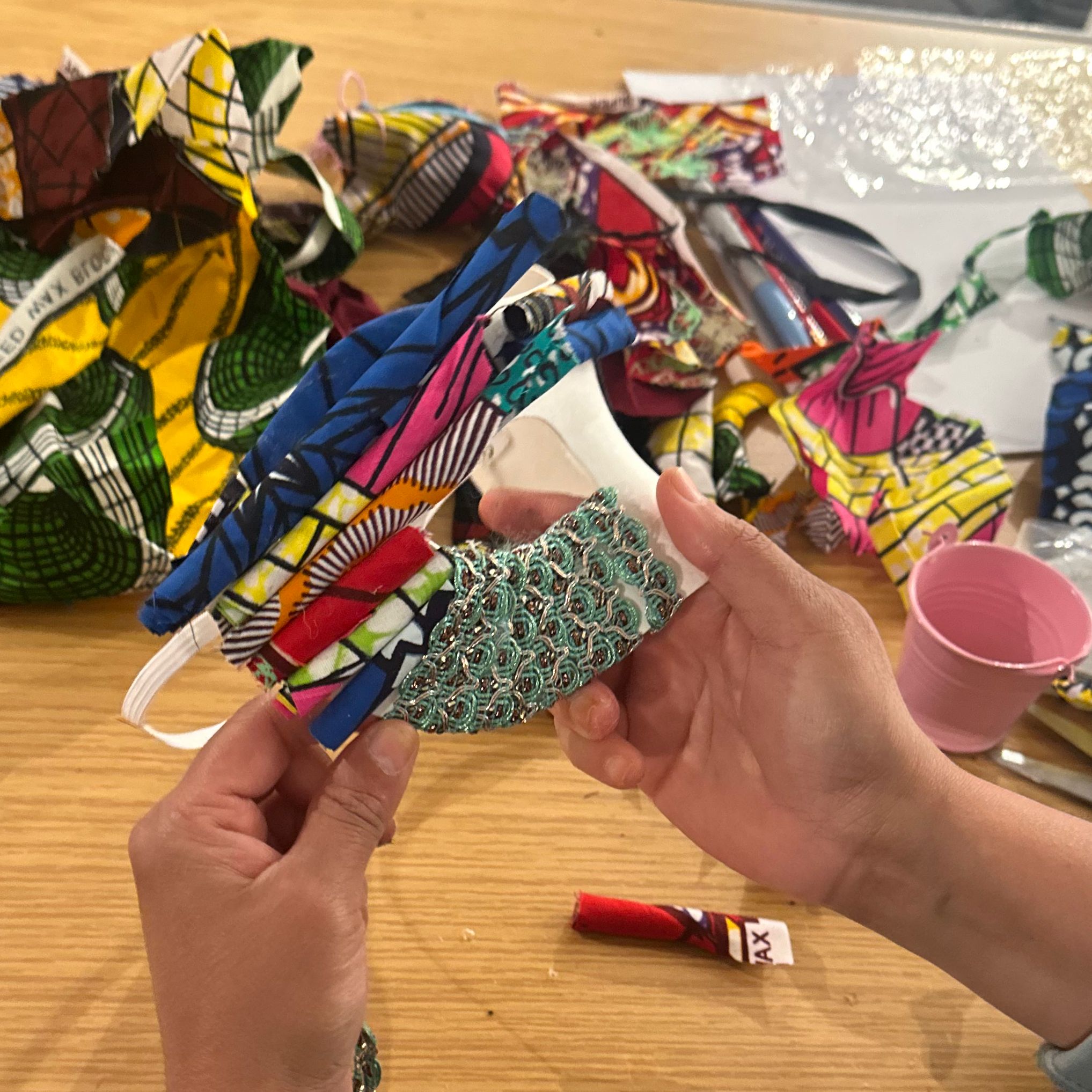 At the first workshop, our convener and Creative Director of FFOLAJI LONDON, a UK based, African inspired fashion brand, Princess Folaji Fasanya-Omoyeni spoke about creativity as a tool for boosting mental wellness. Participants learned that the patterns and structures of textiles can be used to communicate ideologies, feelings, and even social issues. From the deliberate subversion of traditional dressmaking rules to the symbolic power of unconventional construction, the workshop demonstrated the versatility of textiles as a medium for expression.