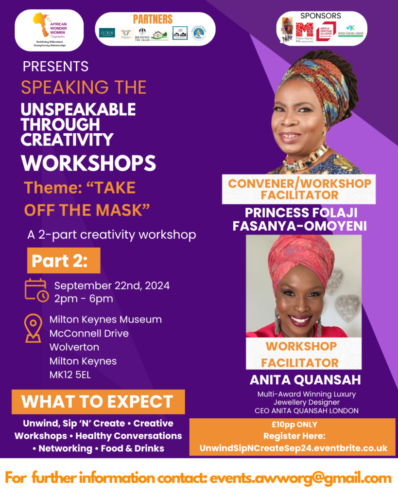 Spaces are limited, register for the Speaking The Unspeakable Through Creativity Workshop today!We also offer “Unwind Sip ‘N’ Create” private parties too. Contact us for our packages via; events.awworg@gmail.com